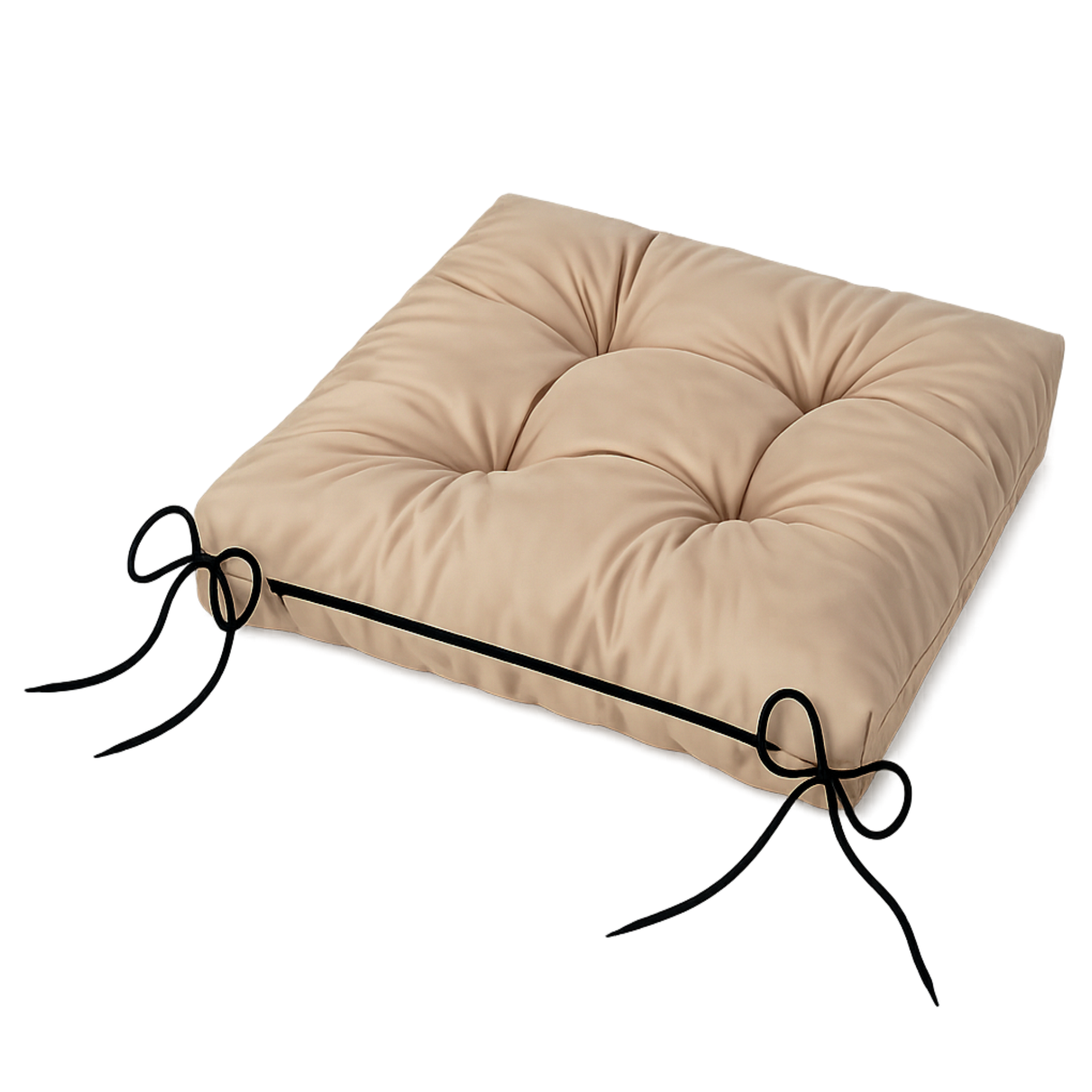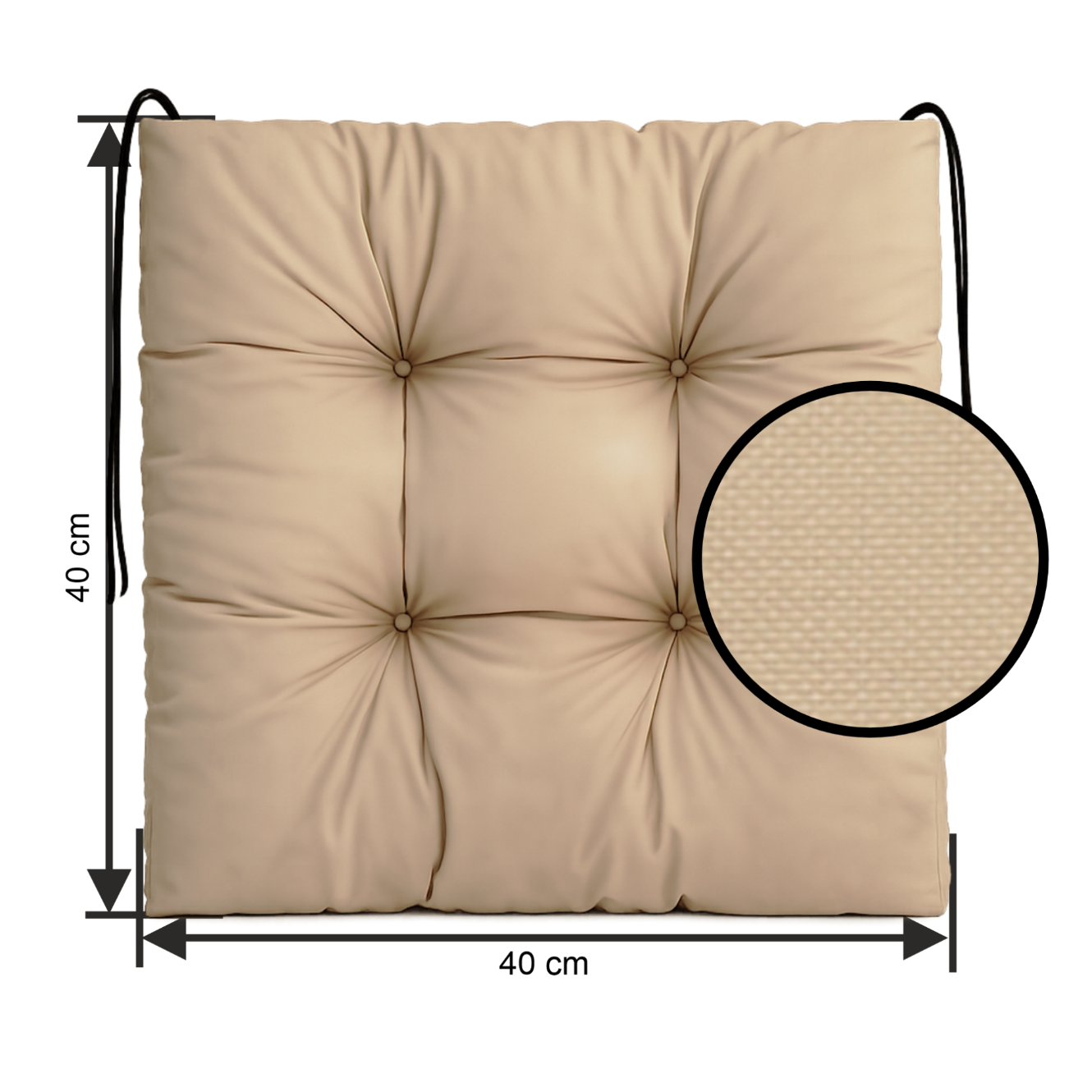 Poduszka posiada dwa przyszyte sznurki, dzięki którym łatwo i stabilnie przymocujesz ją do krzesła. Solidne wypełnienie oraz eleganckie pikowania zapewniają wysoki komfort siedzenia i estetyczny wygląd