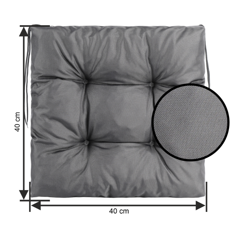 Poduszka posiada dwa przyszyte sznurki, dzięki którym łatwo i stabilnie przymocujesz ją do krzesła. Solidne wypełnienie oraz eleganckie pikowania zapewniają wysoki komfort siedzenia i estetyczny wygląd
