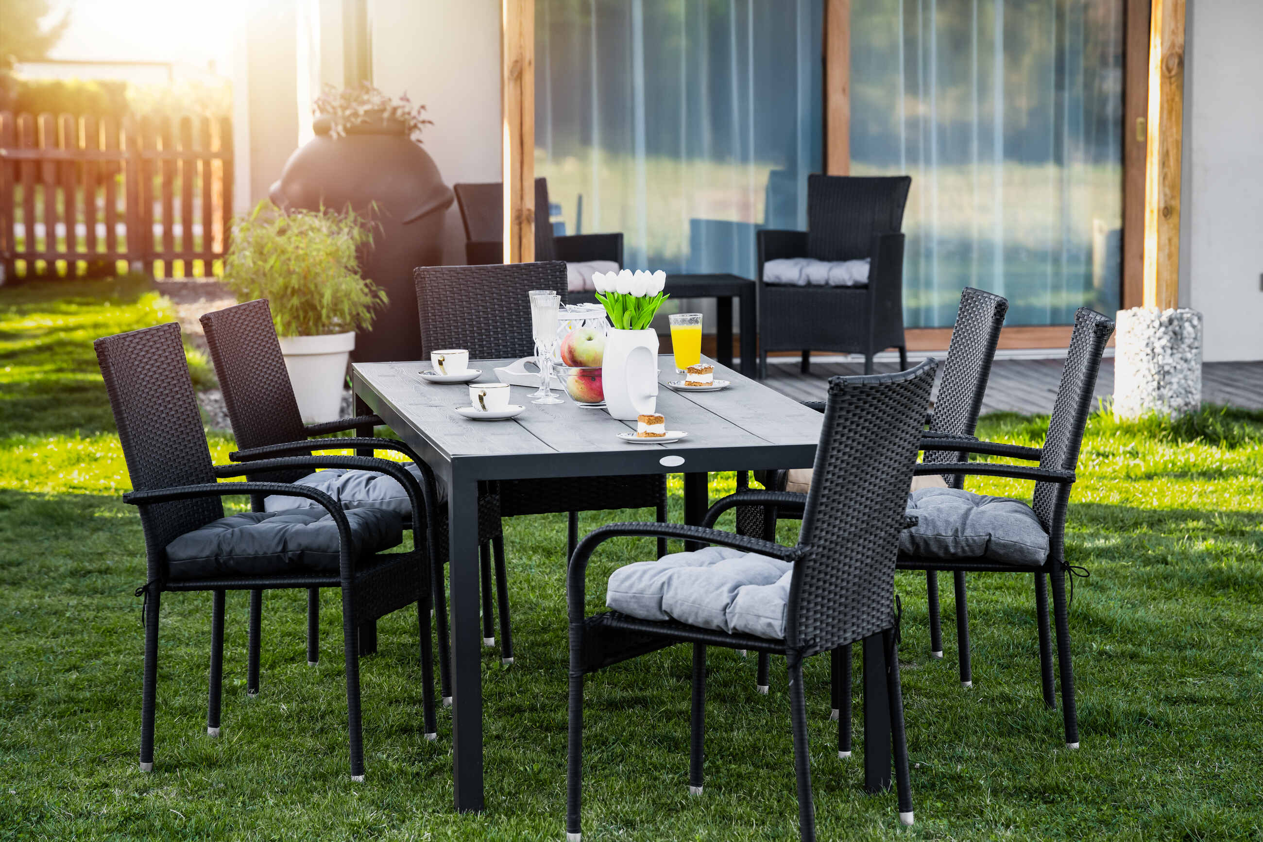 - Nowoczesny design – Świetnie komponuje się zarówno z krzesłami plastkowymi jak i z rattanu czy drewna lub metalu. Dodaje przestrzeni elegancji i nowoczesnego charakteru.