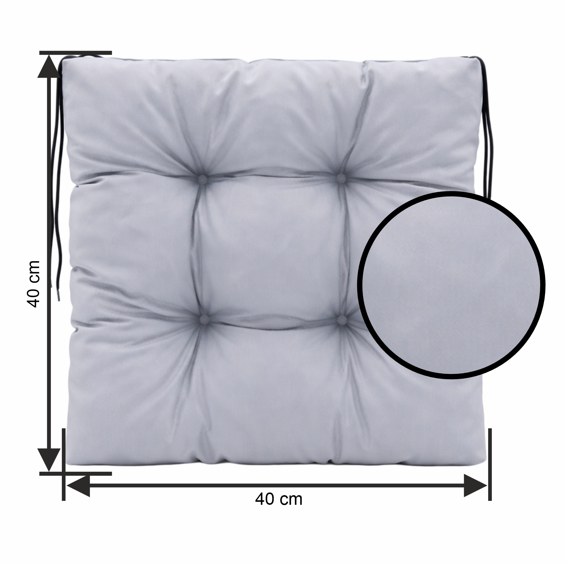 Poduszka posiada dwa przyszyte sznurki, dzięki którym łatwo i stabilnie przymocujesz ją do krzesła. Solidne wypełnienie oraz eleganckie pikowania zapewniają wysoki komfort siedzenia i estetyczny wygląd